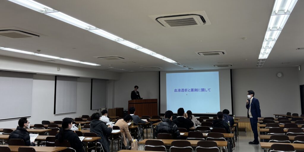 血液透析関連薬剤のみならず、血液透析に伴う高血圧や低血圧などに対する治療についても焦点を当て、患者様ごとに発現時期が違うこともあり、それぞれに応じた対応や治療薬選択の重要性について学ぶことができました。