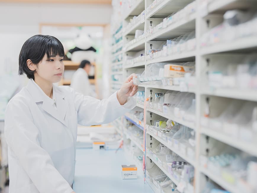 先輩薬剤師は、「野菜不足」「膝がいたい」といった患者さまの悩みを聞いて、健康食品やOTC(一般用医薬品)を紹介することもあります。そんな患者さまの生活をフォローアップできる薬剤師に私もなりたいです。