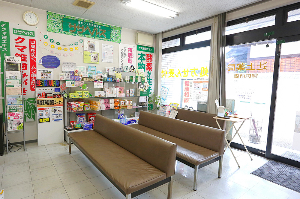 丸亀市の北側の海に近い所にある御供所店は、お年寄りの患者さんが多く地域に密着した店舗です。門前の外科領域だけでなく、地元の方が何でも相談できるかかりつけ薬局として「親切・分かりやすい」をモットーに笑顔を絶やさないよう店員一同入りやすい店舗作りを目指して毎日頑張っています。