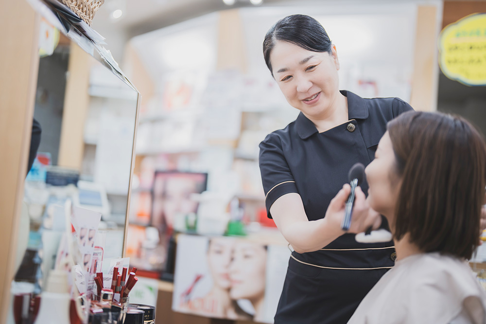 化粧品部門では、おきがるエステ、マッサージ、特別エステなどお客様のご要望によりお選び致しておりますので、ぜひお気軽にご来店ください。
