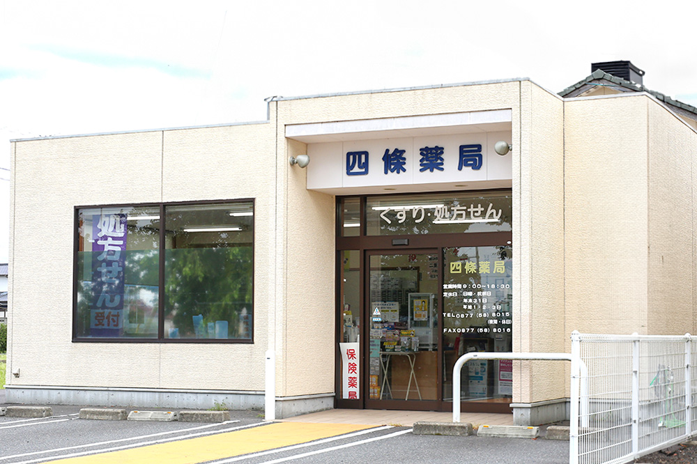 四條薬局は、自然溢れるまんのう町の北西部にあり、隣の内科クリニック、デイサービスセンター、歯科医院とともに「安心医療村だん路」を形成しています。